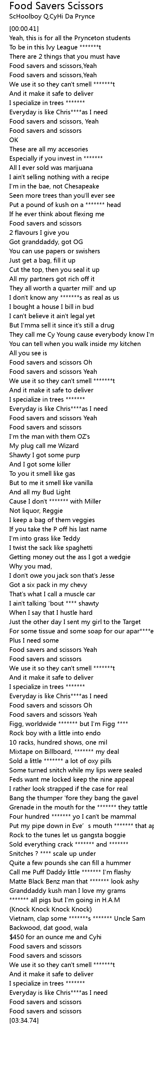 | [02:41.17] | Sold a little ******* a lot of oxy pills |