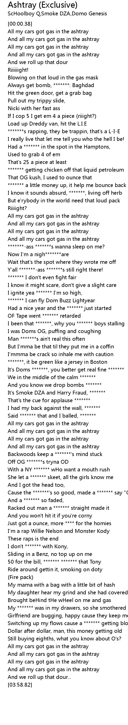 All my cars got gas in the ashtray |