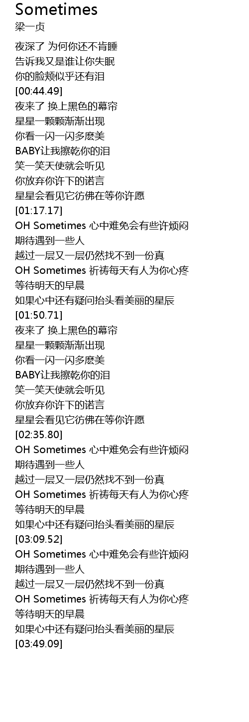| [01:34.38] | OH Sometimes 祈祷每天有人为你心疼 |