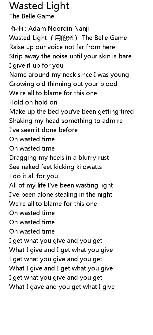 | [00:00.00] | Wasted Light yòng de guāng The Belle Game |