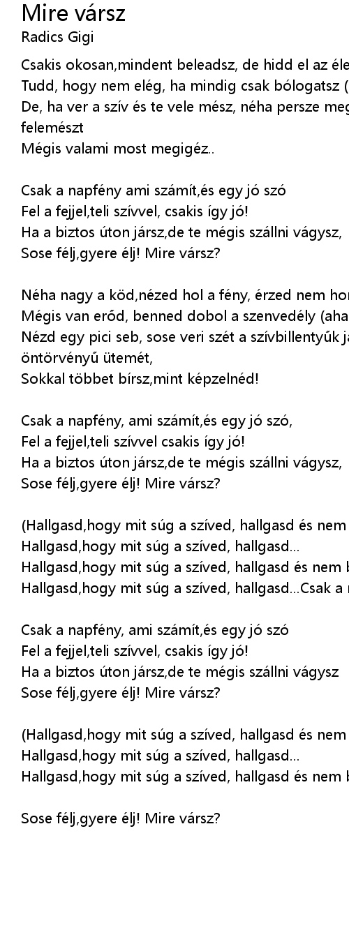 | Hallgasd, hogy mit su g a szi ved, hallgasd e s nem baj, ha te ved | |