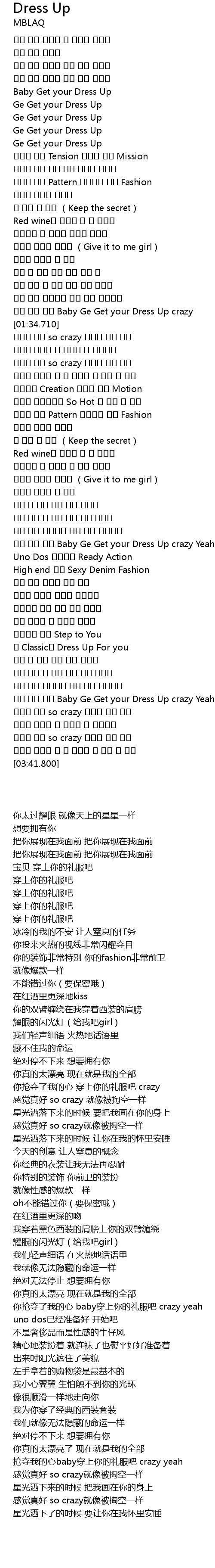 | [03:18.450] | Baby Ge Get your Dress Up crazy Yeah |