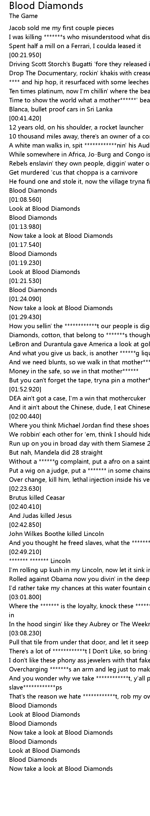 Diamonds, cotton, that belong to *******s though |