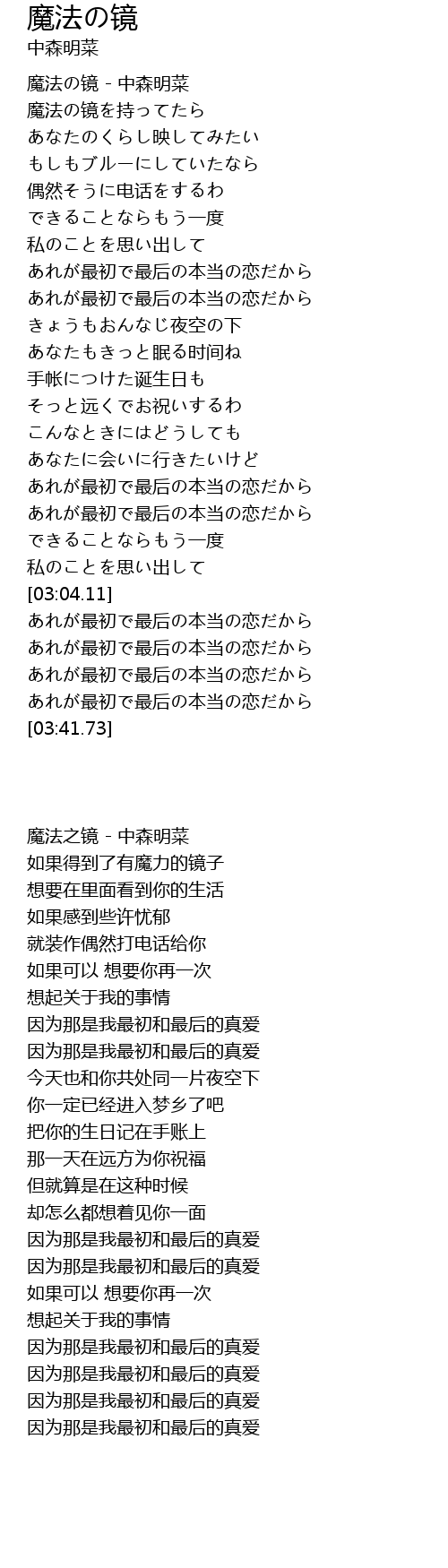 | [00:00.08] | 魔法の镜 - 中森明菜 |