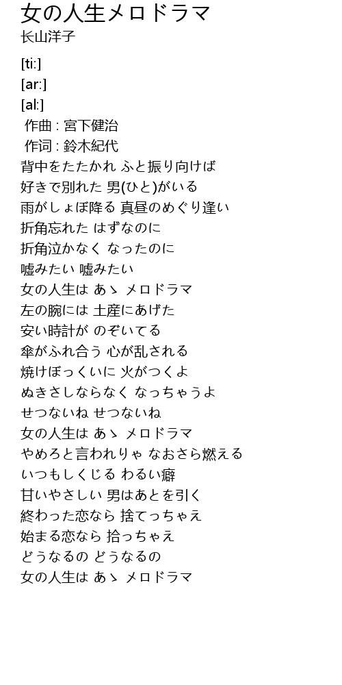 | [01:19.12] | 女の人生は あゝ メロドラマ |