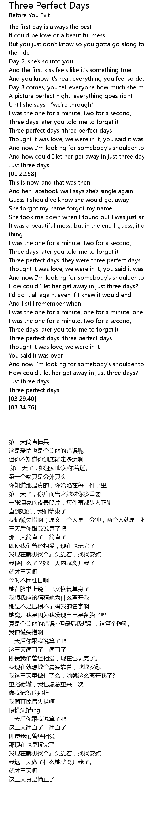 | [01:59.98] | Three perfect days, they were three perfect days |