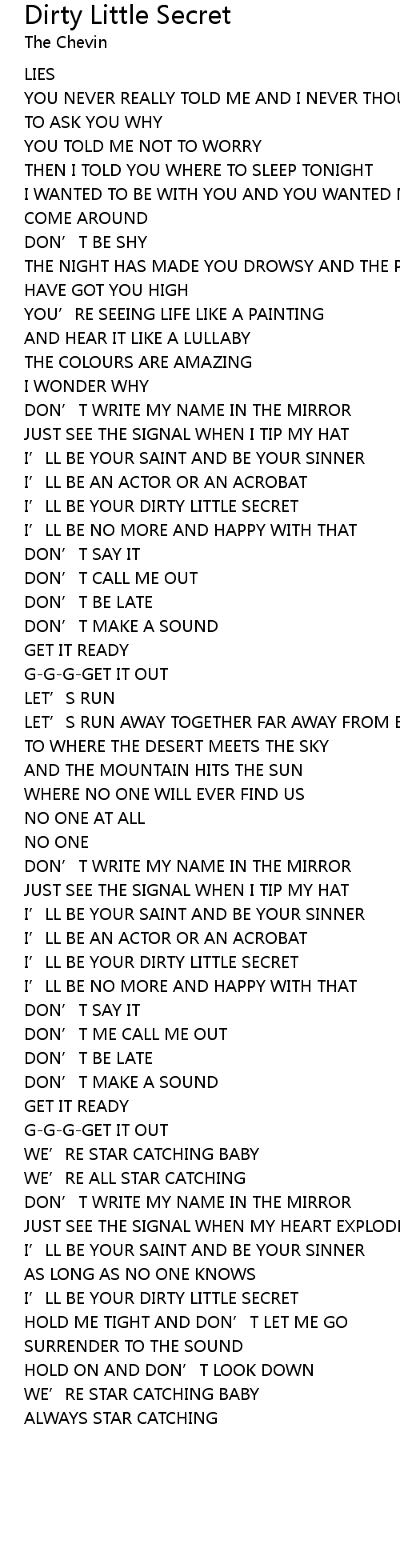 | Song | Dirty Little Secret |