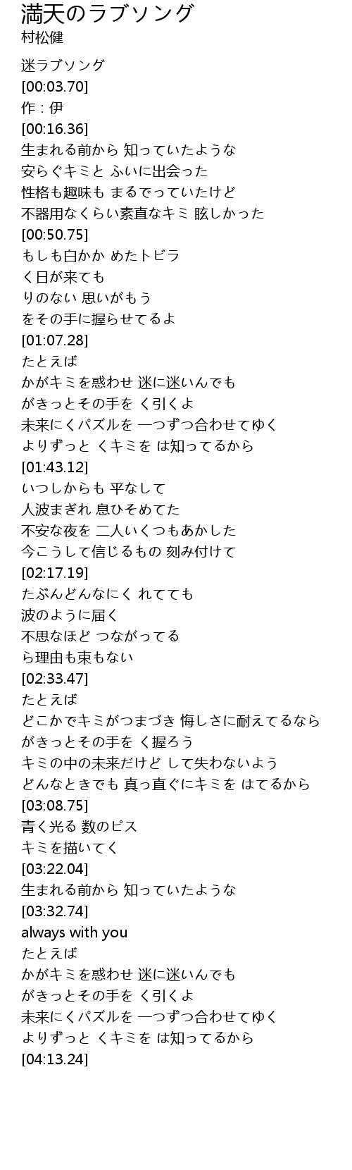 | [03:54.21] | 未来にくパズルを 一つずつ合わせてゆく |