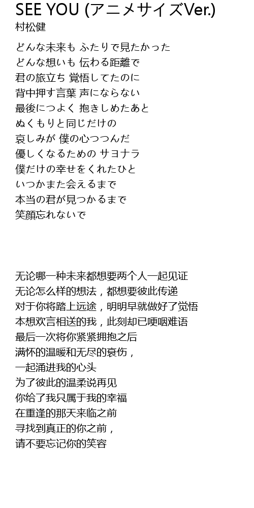 | [00:33.41] | 最後につよく 抱きしめたあと |