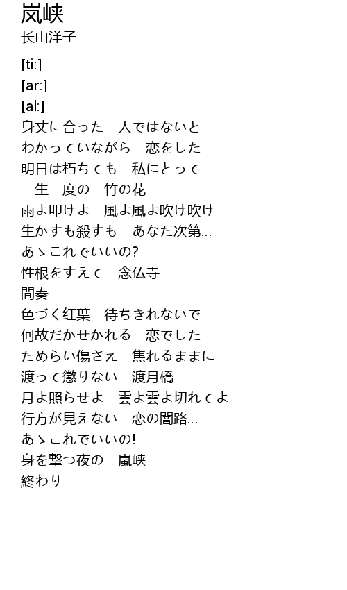 | [02:46.66] | 渡って懲りない 渡月橋 |