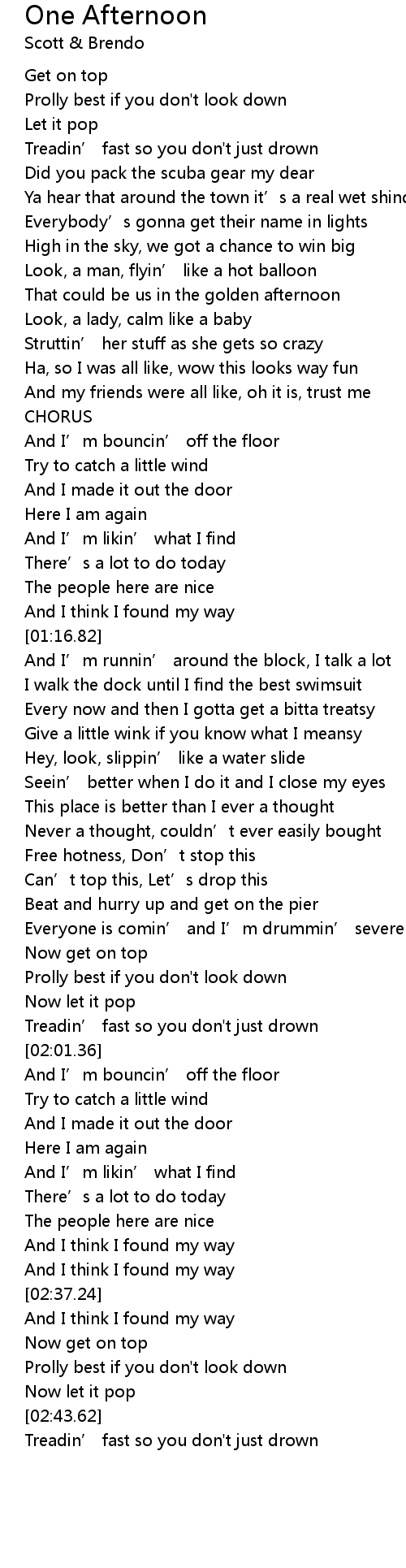 | [00:33.08] | Prolly best if you don't look down |