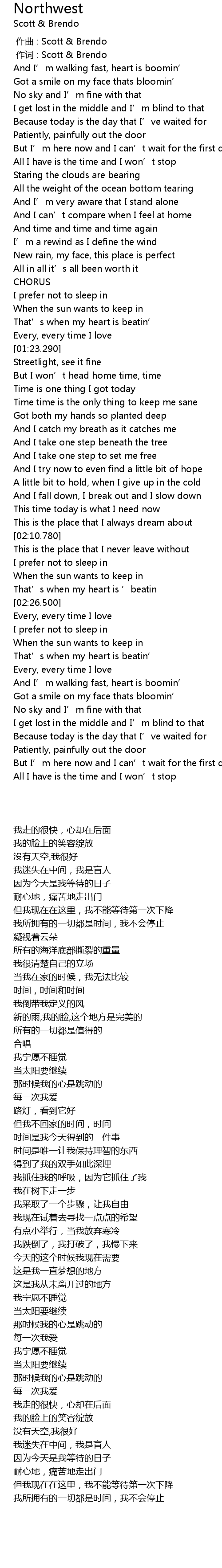 | [00:01.00] | 作词 : Scott & Brendo |