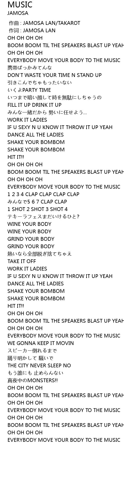 [03:23.100] EVERYBODY MOVE YOUR BODY TO THE MUSIC