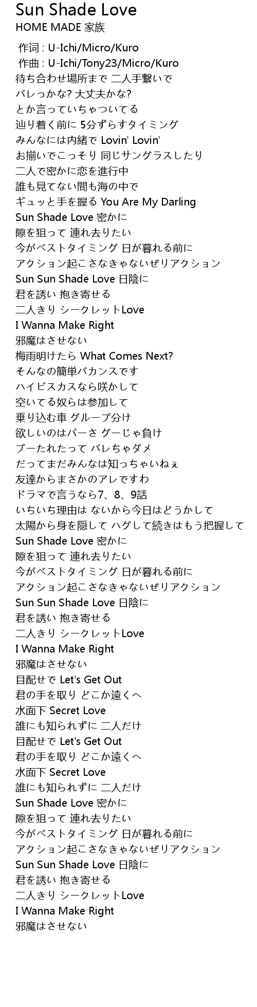 | [01:06.65] | Sun Sun Shade Love 日陰に |