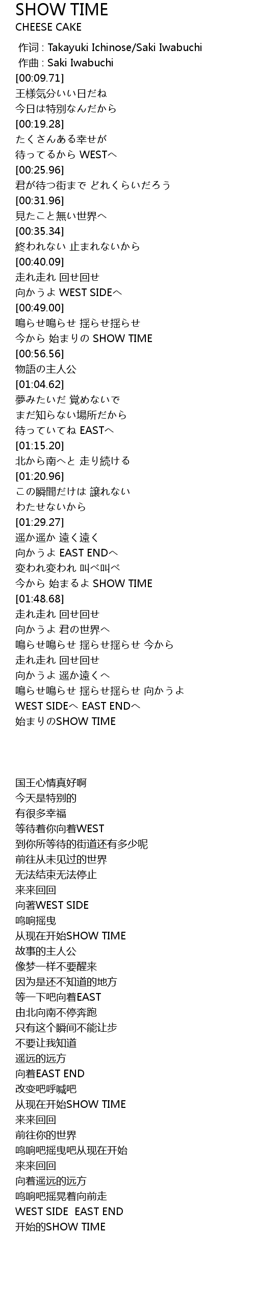 | [01:42.02] | 今から 始まるよ SHOW TIME |