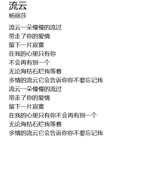 | [02:37.972] | 多情的流云它会告诉你你不要忘记我 |