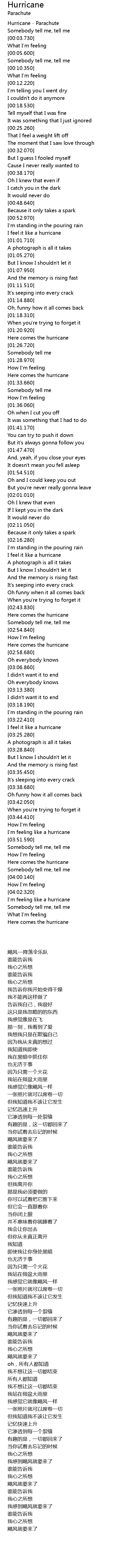 | [00:00.160] | Hurricane - Parachute |