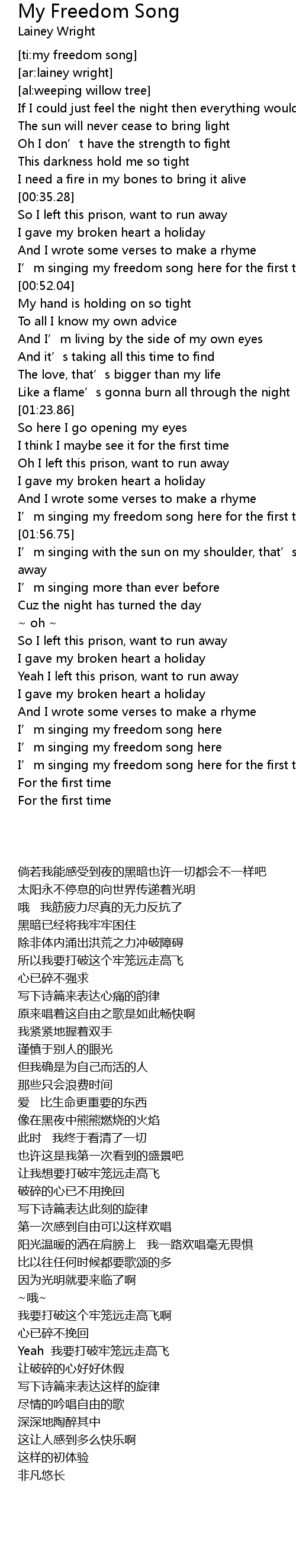 | [00:46.67] | I’m singing my freedom song here for the first time |