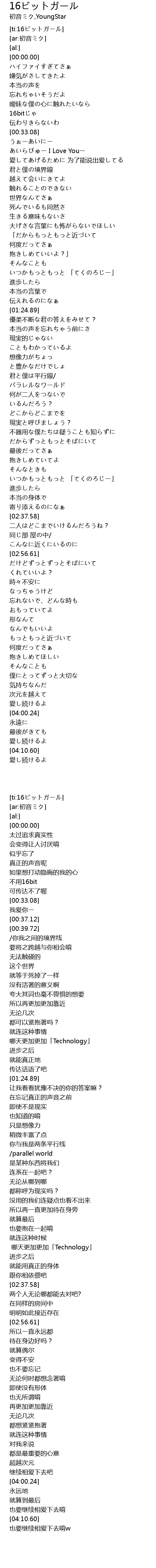 | [02:26.27] | いつかもっともっと 「てくのろじー」 |