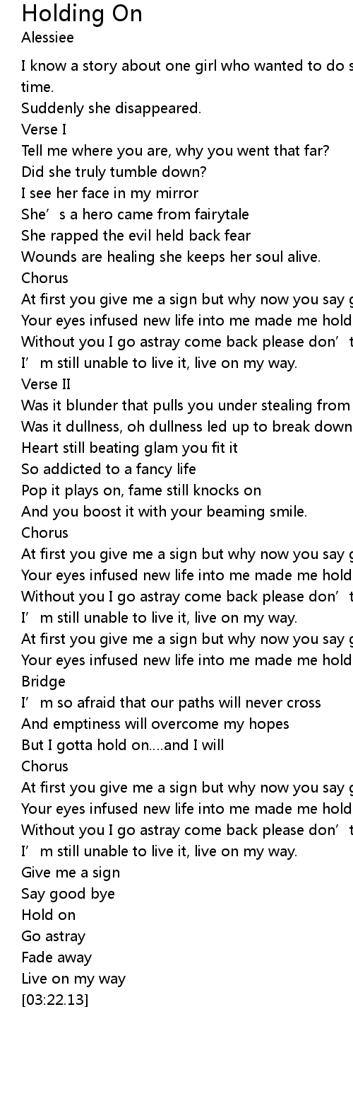 | [00:46.04] | At first you give me a sign but why now you say good bye? |