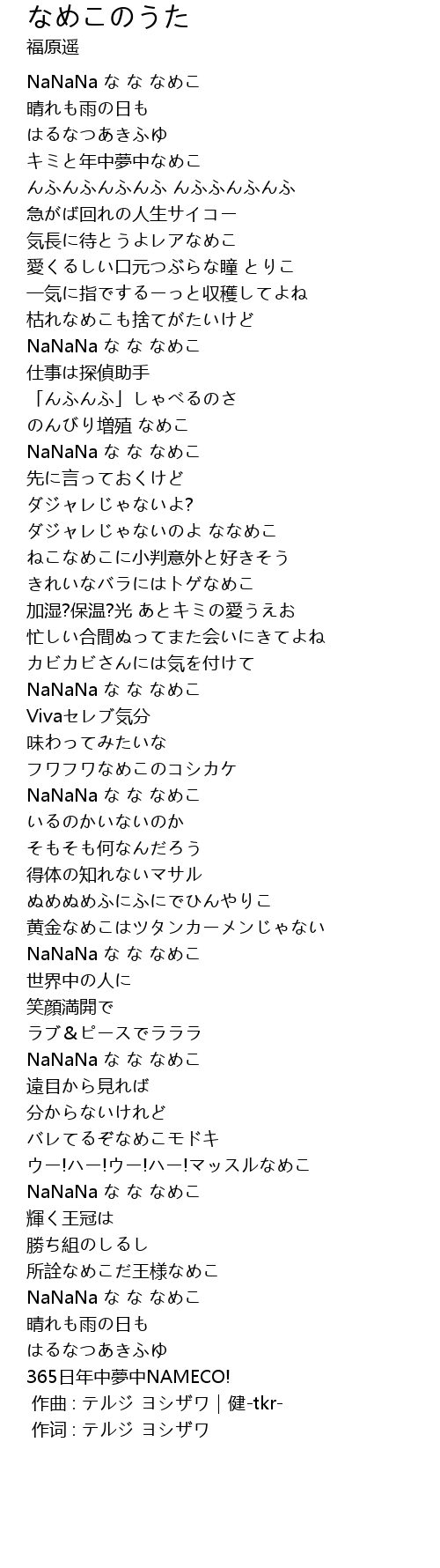なめこのうた  Lyrics