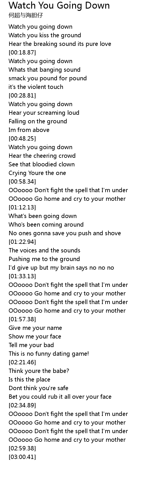 | [00:40.00] | Watch you going down |