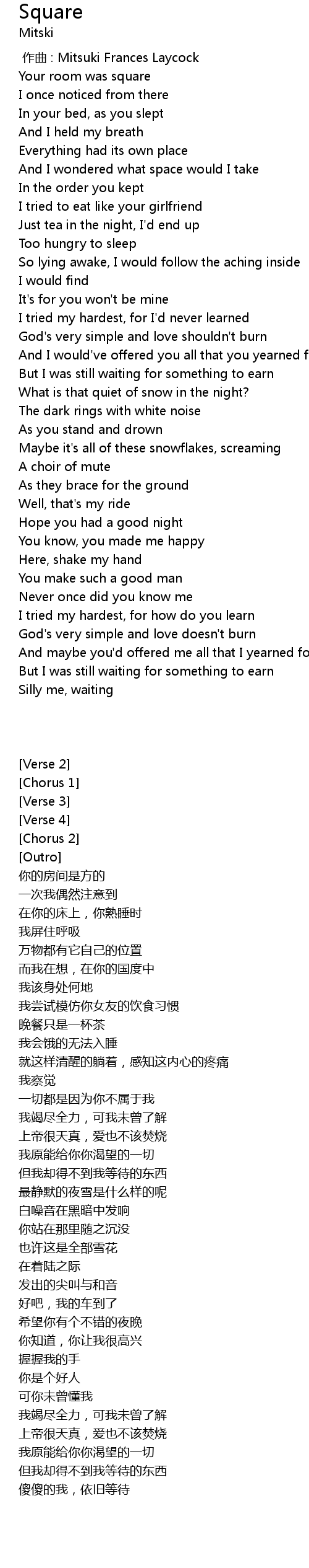 | [00:00.000] | zuò qǔ : Mitsuki Frances Laycock |