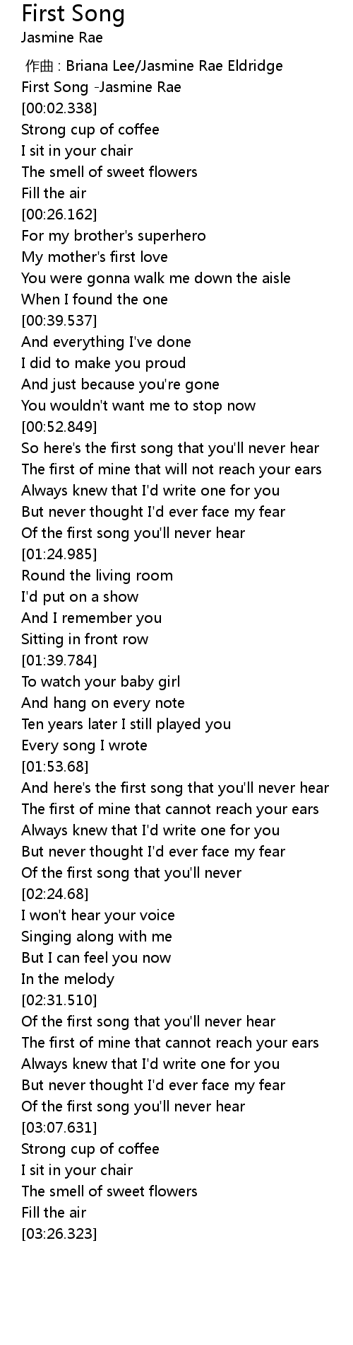 | [00:00.000] | 作曲 : Briana Lee/Jasmine Rae Eldridge |