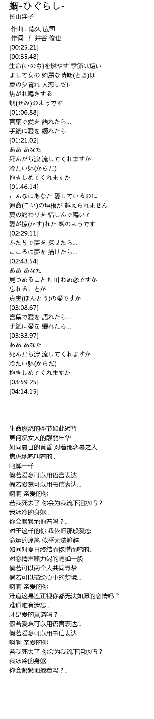 | [00:41.37] | 生命(いのち)を燃やす 季節は短い |