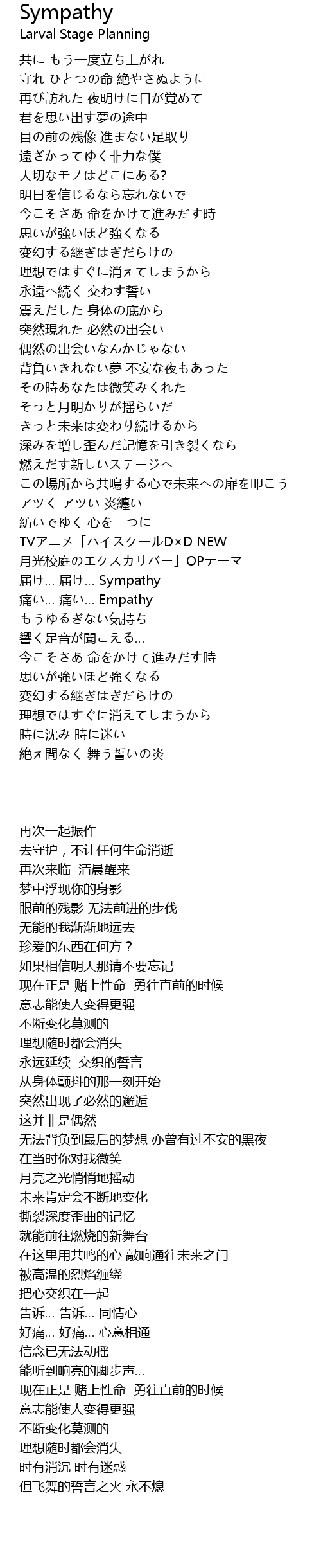 | Album | TVアニメ「ハイスクールD×D NEW 月光校庭のエクスカリバー」OPテーマ -「Sympathy」 |