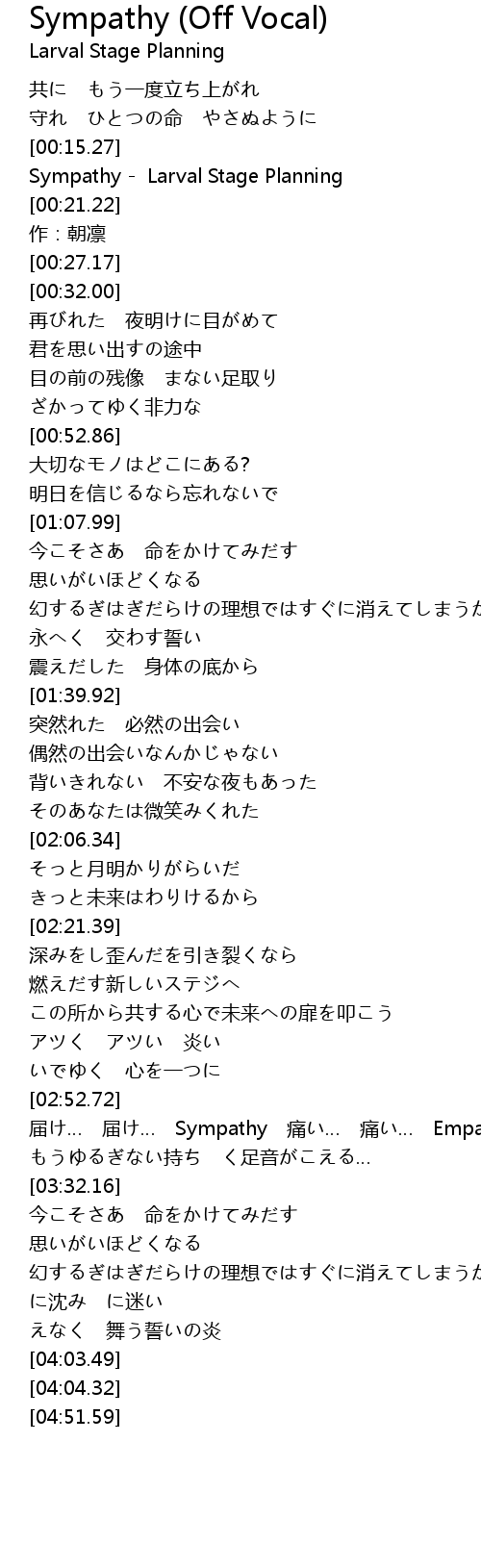 | [00:15.80] | Sympathy Larval Stage Planning |