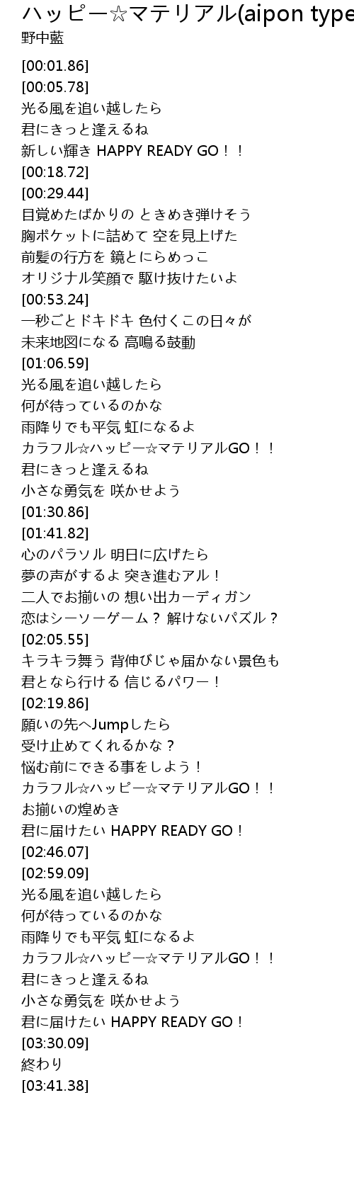 | [03:11.69] | カラフル☆ハッピー☆マテリアルGO!! |