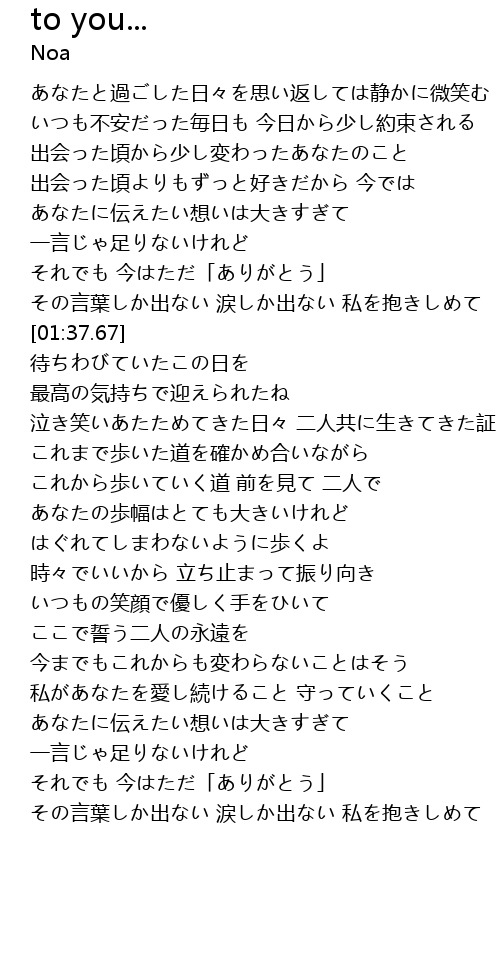 | [01:01.62] | あなたに伝えたい想いは大きすぎて 一言じゃ足りないけれど |