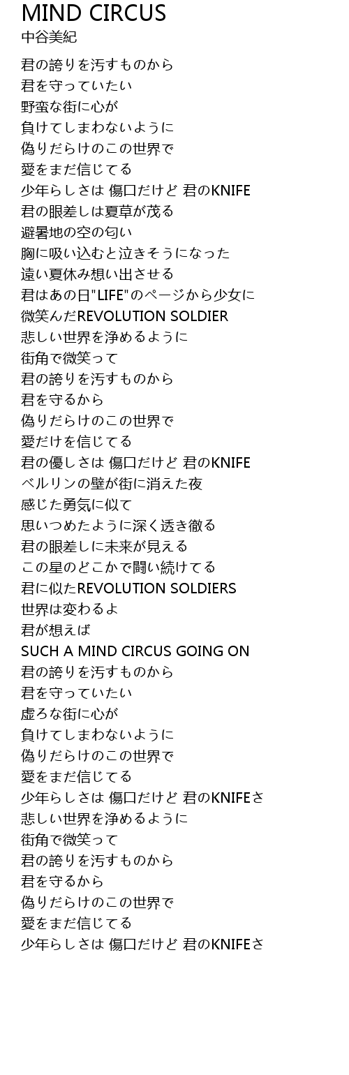 | 少年らしさは 傷口だけど 君のKNIFEさ | |