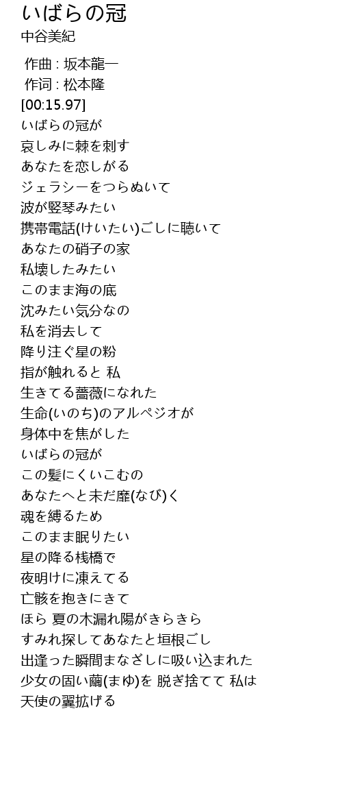 | [00:22.32] | いばらの冠が |