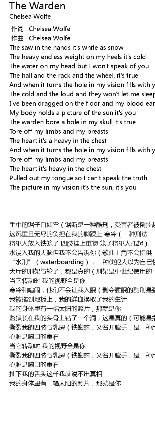 | [00:01.000] | 作曲 : Chelsea Wolfe |