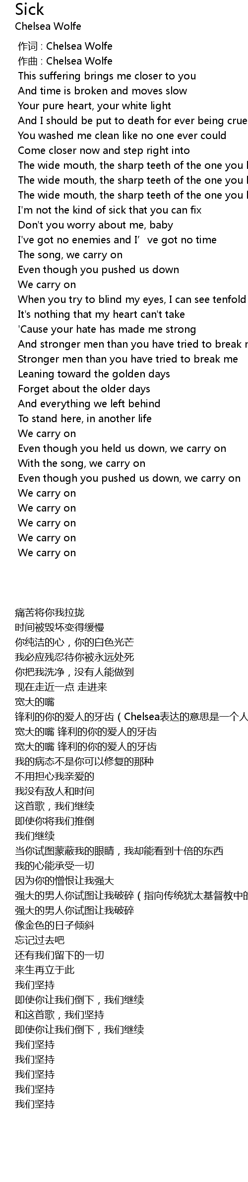| [00:00.000] | 作词 : Chelsea Wolfe |