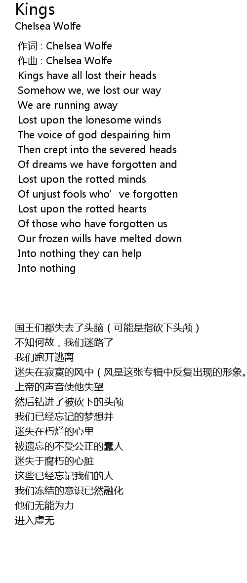 | [00:00.000] | 作词 : Chelsea Wolfe |