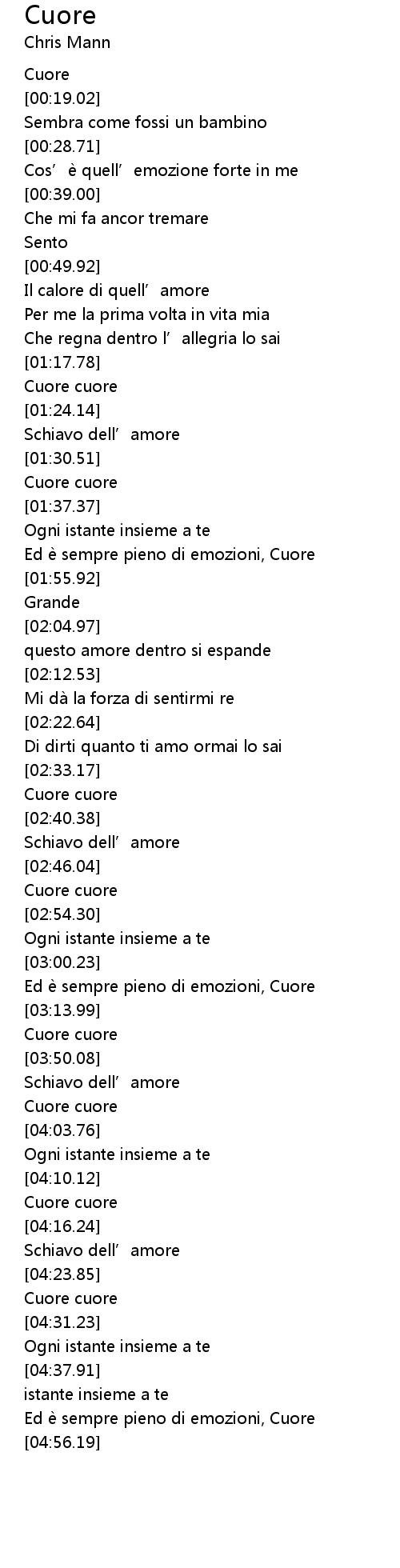 | [02:47.69] | Cuore cuore |