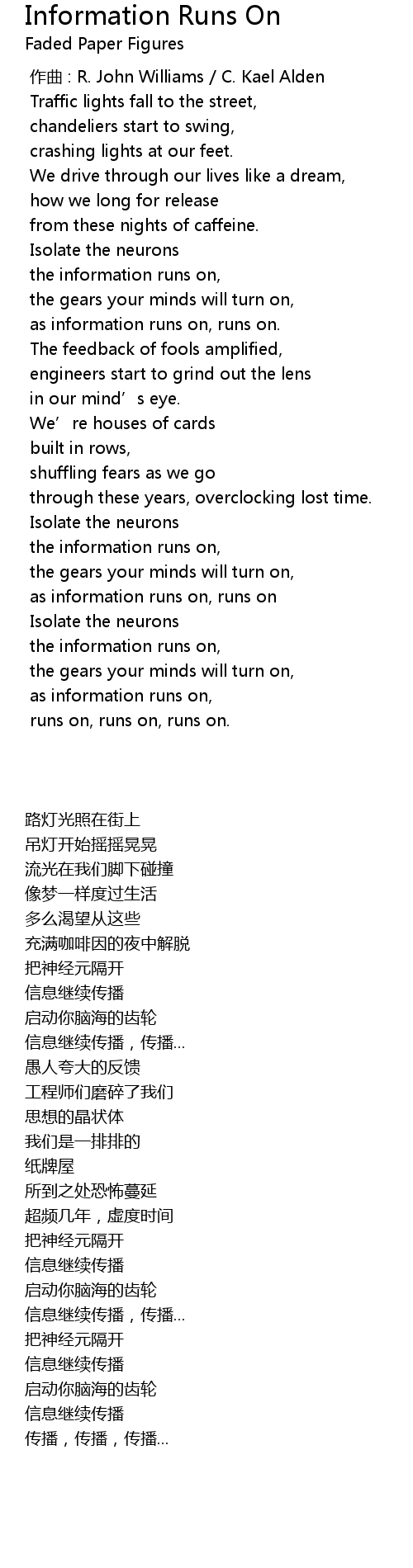| Song | Information Runs On |