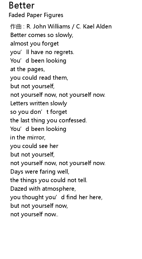 | [00:18.208] | Better comes so slowly, |