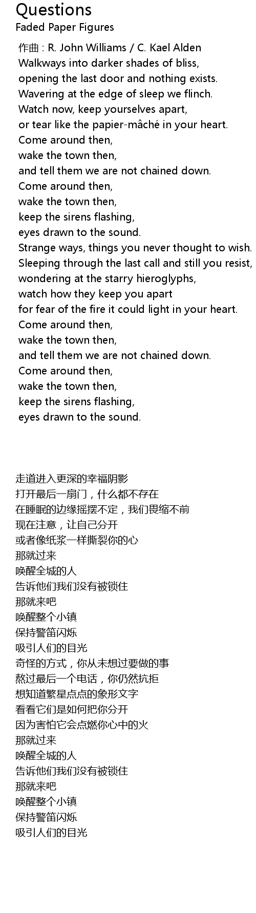 | [00:00.000] | zuo qu : R. John Williams C. Kael Alden |