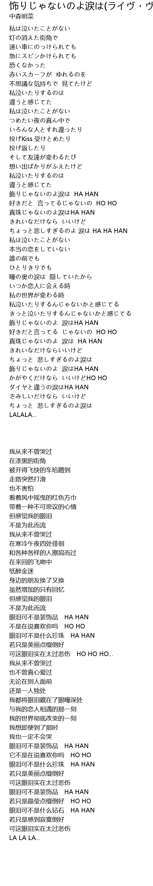 ちょっと悲しすぎるのよ 涙は HA HA HAN |