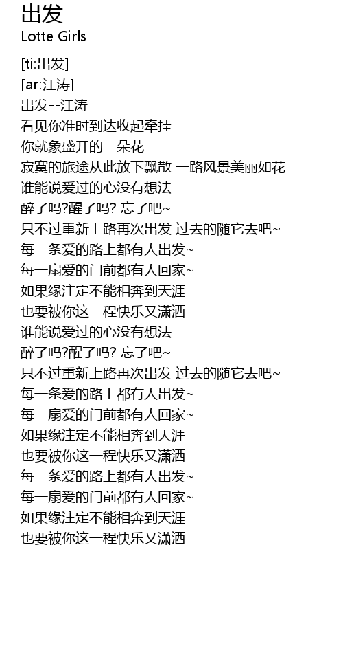 | [00:00.180] | 出发--江涛 |