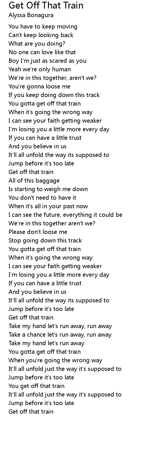 You gotta get off that train |
