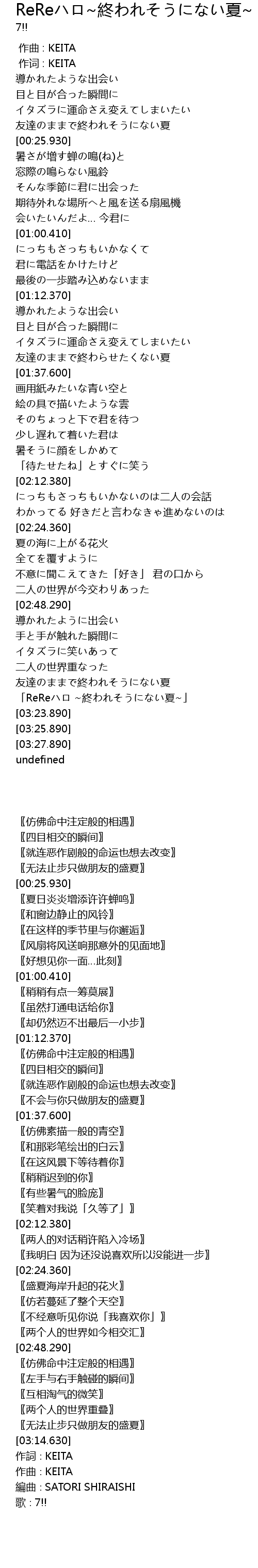 | [03:14.630] | 「ReReハロ ~終われそうにない夏~」 |