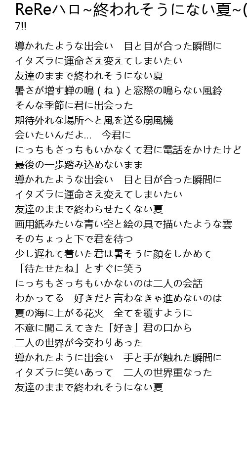 | [01:28.555] | 友達のままで終わらせたくない夏 |