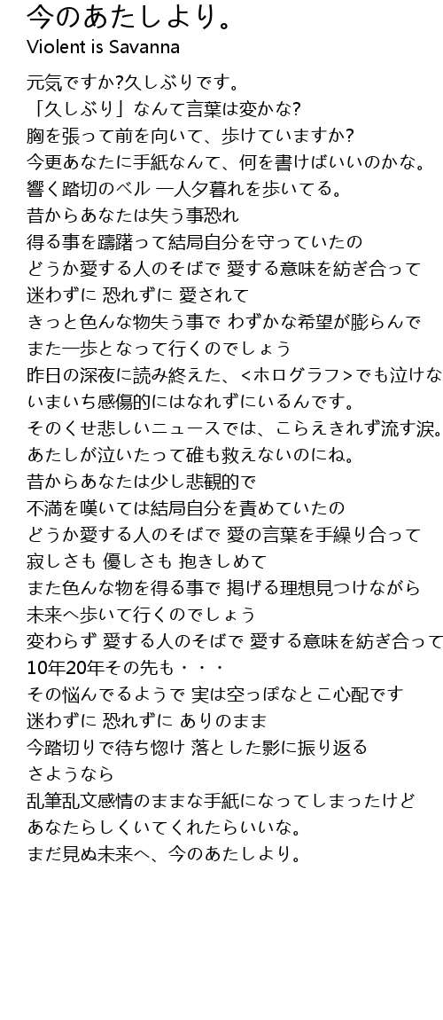 | 今更あなたに手紙なんて、何を書けばいいのかな。 | |