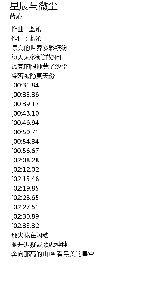 | [01:37.56] [00:31.84] | 星辰微尘什么都有可能 |