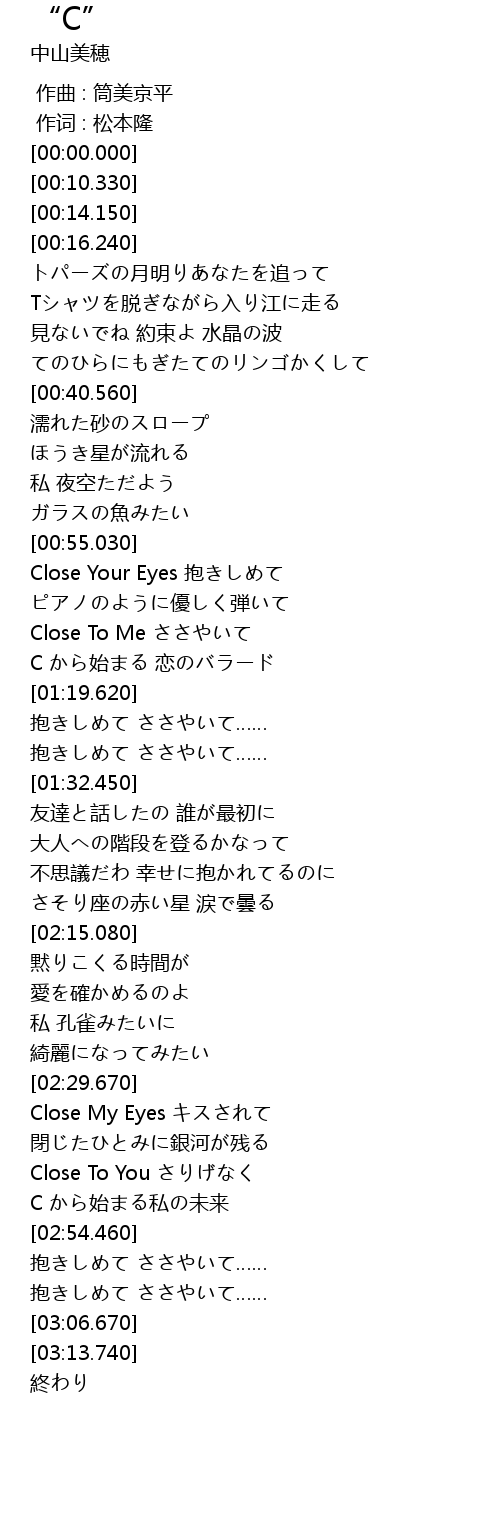 | [00:56.650] | Close Your Eyes 抱きしめて |